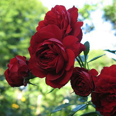 Penjačica s krupnim tamnocrvenim cvjetovima koji se otvaraju u grozdovima.