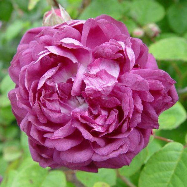 Starinska mahovinasta ruža. Cvjetovi u početku smeđeljubičaste boje kasnije prelaze u čistu ljubičastu a središte cvijeta otkriva oko oblika gumba. Pupoljci su tek rijetko pokriveni crvenom mahovinom. Grmovi su snažni s tamnim lišćem i s puno trnja. Cvate jednom.