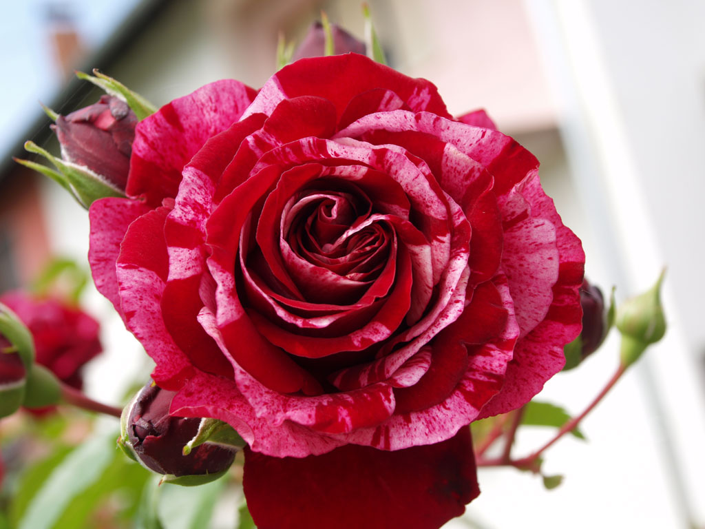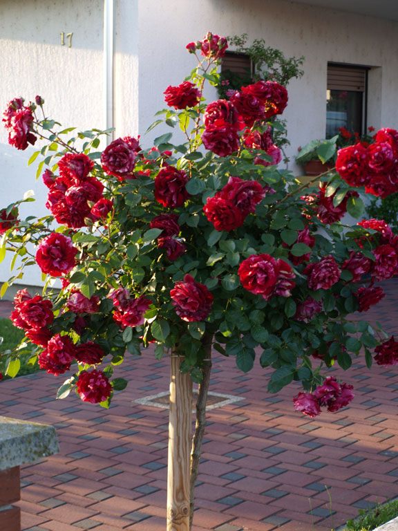 Cvijetovi izdaleka izgledaju crvene boje, no kad se pogledaju izbliza, vidljive su slabo izražene pruge bjelkaste boje. Krošnje srednje veličine, blago pendulaste forme. Novija sorta.