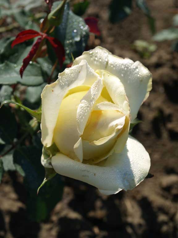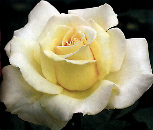 Upadljivo krupni cvjetovi svjetložute boje u početku a kasnije blijede boje bjelokosti. Miris voćni. Cvjetovi otporni na kišu. Grm visok, gust, cvate do kasne jeseni.
