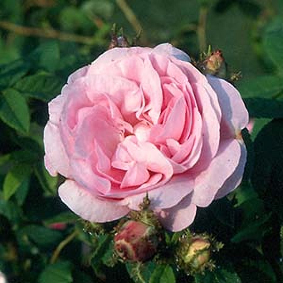 Prekrasni pupoljci umotani u svježu svjetlozelenu mahovinastu prevlaku otvaraju se u roza cvjetove sa svilenkastim laticama. Grmovi gusti, lišće svjetlozeleno. Mirisna. Jedna od najljepših mahovinastih ruža. Naraste do 120 cm. Cvate jednom.