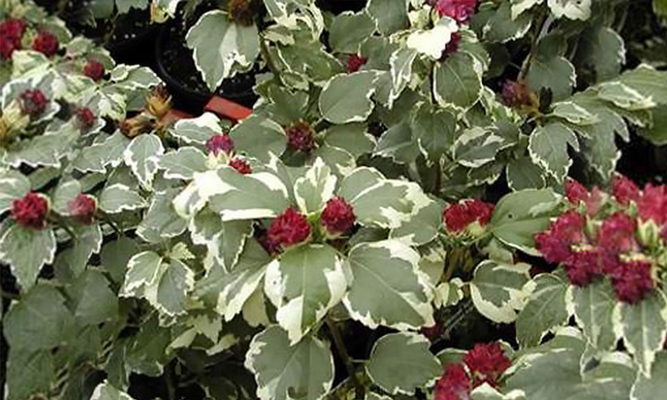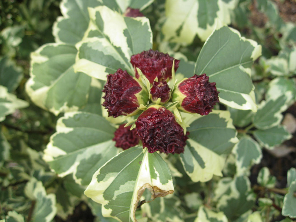 Vrlo neobična sorta vrtnog hibiscusa. Više je atraktivan zbog šarenih listova nego zbog cvjetova. Listovi su zeleni od središte te krembijeli prema rubovima. Malo su krupniji u odnosu na ostale sorte. Biljke stvaraju brojne crvene pupoljke koje se ne otvaraju te ostaju poluotvoreni.