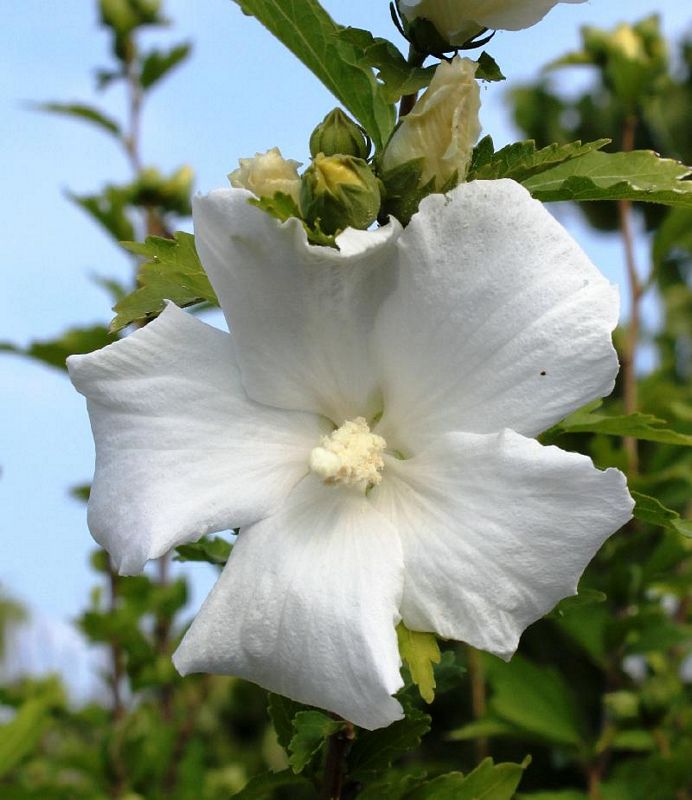 Cvjetovi čisto bijele boje, vrlo elegantni, veličine 7-9 cm. Cjetovi ponekad imaju patuljaste latice u sredini. Cvate od srpnja do kraja rujna.