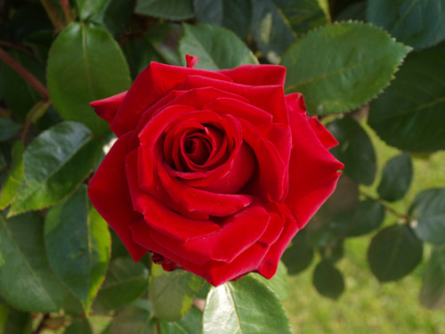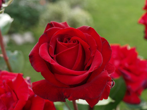 Prekrasna crvena ruža, naš favorit među crvenim hibridnim čajevkama. Jedina mana je što nema izduženi već kuglasti pup.