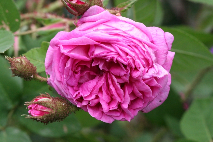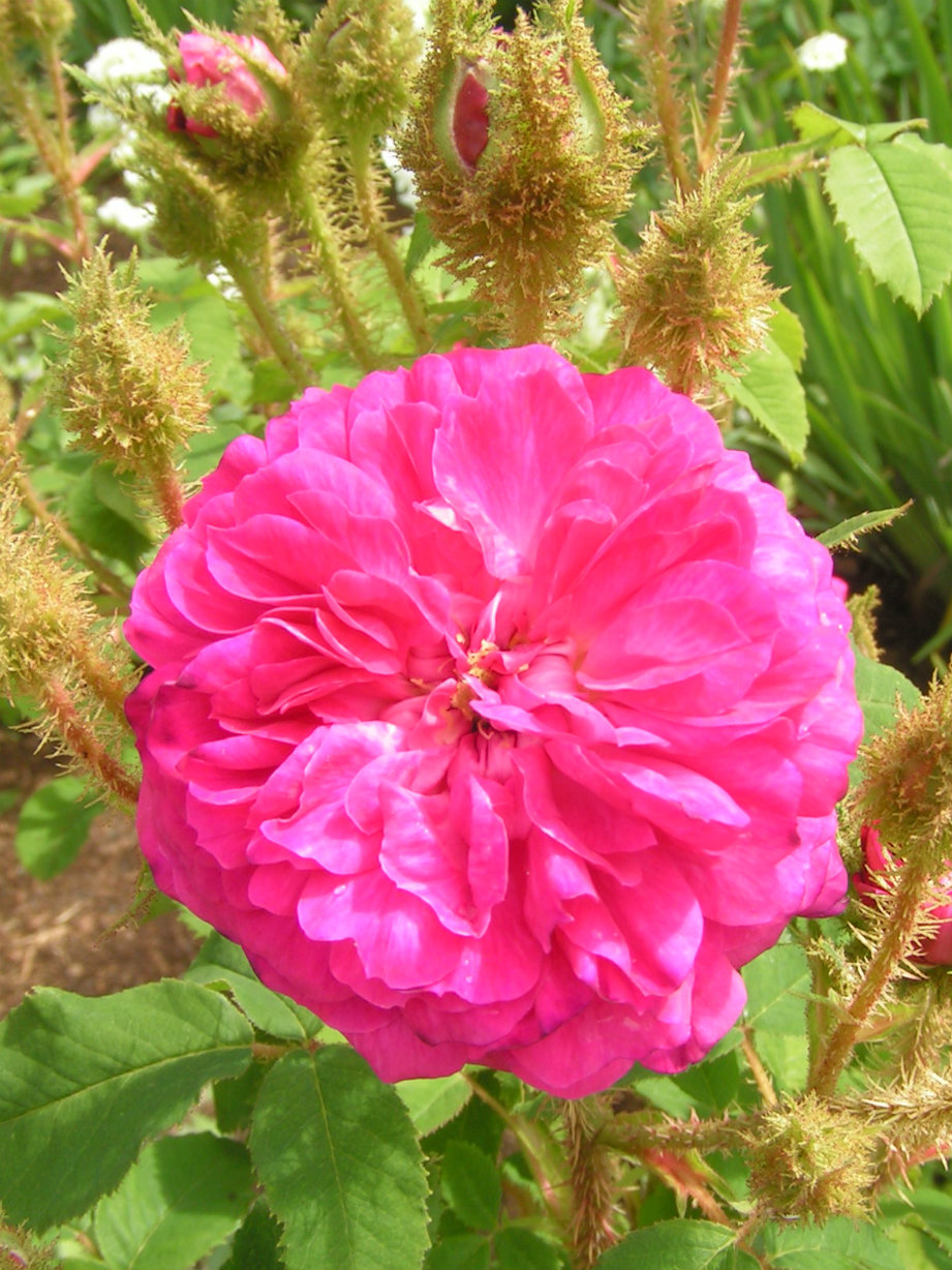 Minijaturna mahovinasta ruža tamnoroza do svjetlogrimizne boje. Slabo maljava. Naraste maksimalno do 90 cm. Lišće sitno. Obnavlja cvatnju.
