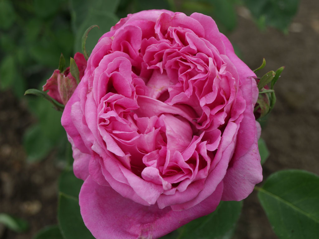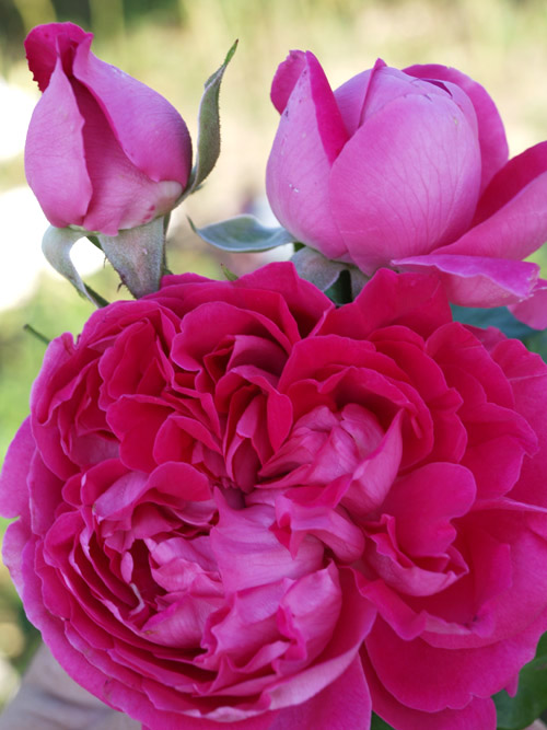 Ruža sa ogromnim cvjetovima prekrasne tople rozaljubičaste boje. Izboji skoro bez trnja. Obnavlja cvatnju.
