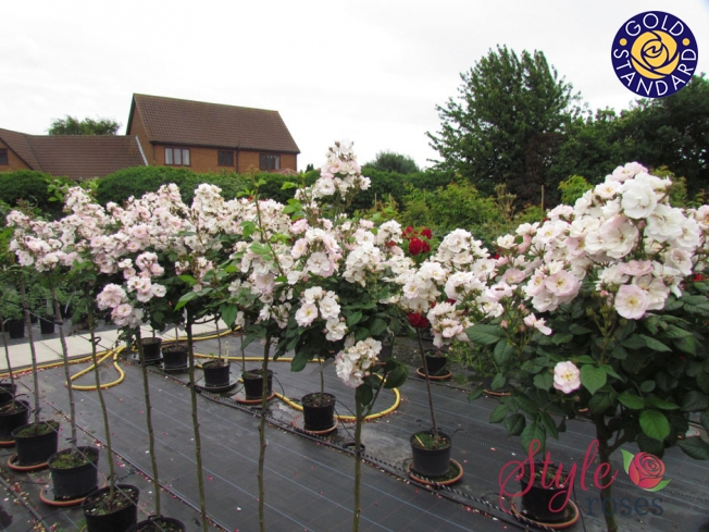 Rambler penjačica uzgojena kao stablašica. Obnavlja cvatnju. Krošnja bujna. Cvjetovi sitni u grozdovima. Lišće usko, kožasto. Cvjetovi bijele boje s blagom primjesom roze.