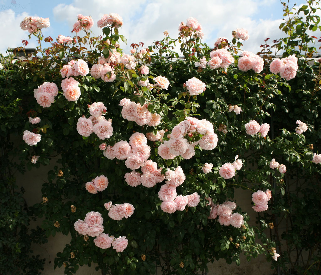 Penjačica izrazito krupnih cvjetova svjetloroza do mareličaste boje. Cvjetovi pojedinačni ili u manjim grozdovima. Miris slab, otporna na bolesti.