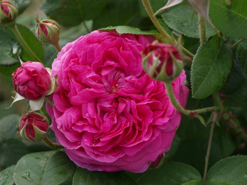 Izrazito bujna centifolia novijeg datuma. Naraste i preko 2 m. Cvjetovi žive ljubičastopurpurne boje s jakim mirisom. Cvate jednom.
